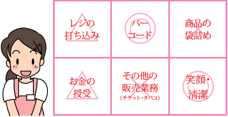 レジ打ちのお仕事、商品補充のお仕事など、お店の中には、お手伝いいただきたいお仕事がいろいろあります。時間帯によってもお仕事がかわります。